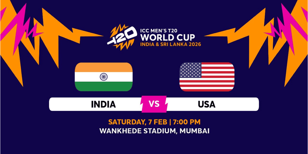 India begin their campaign under lights at the Wankhede Stadium against a determined USA side at 7 PM IST. With passionate home support and the USA eager to begin on winning to note, this prime-time contest promises fast scoring, sharp bowling and top-level intensity throughout an evening filled with unforgettable T20 excitement.